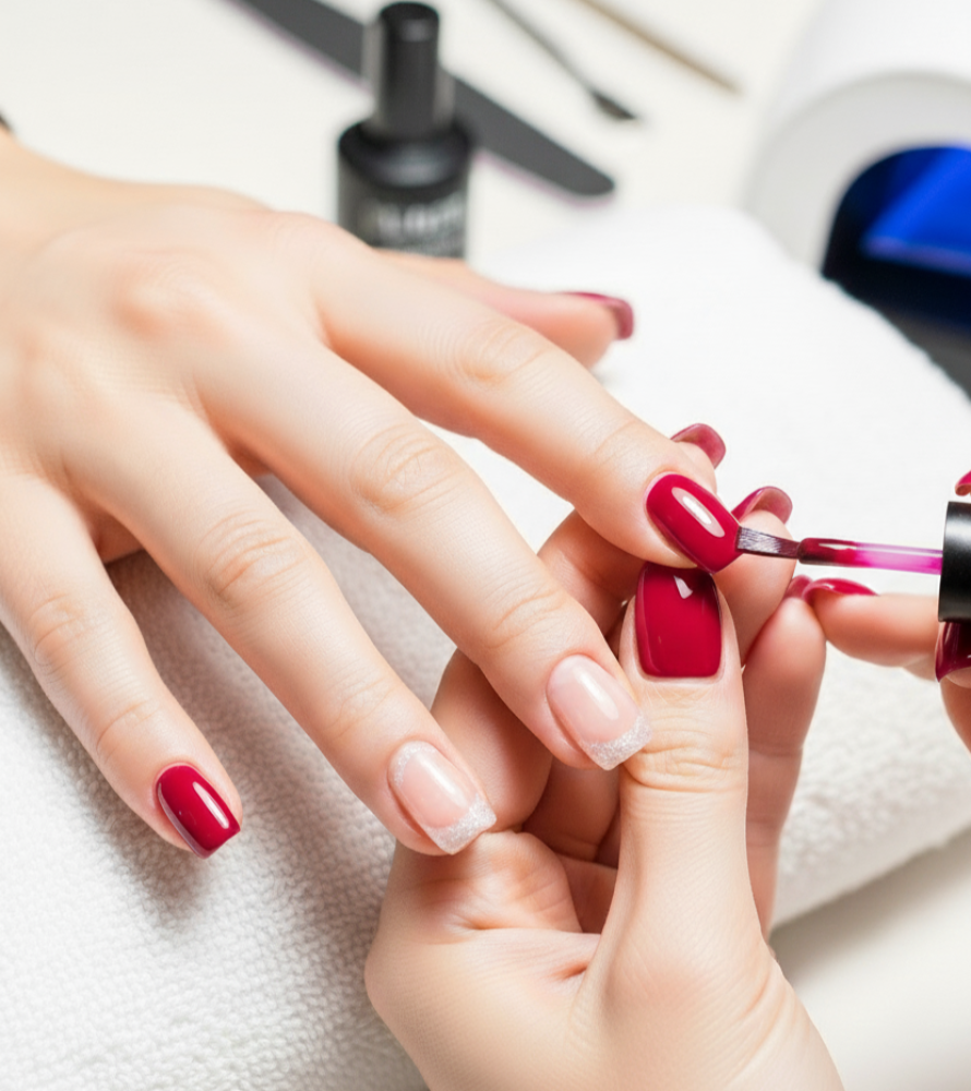 Покрытие гель-лаком: Наносится выбранный оттенок гель-лака, который затем фиксируется под УФ-лампой.